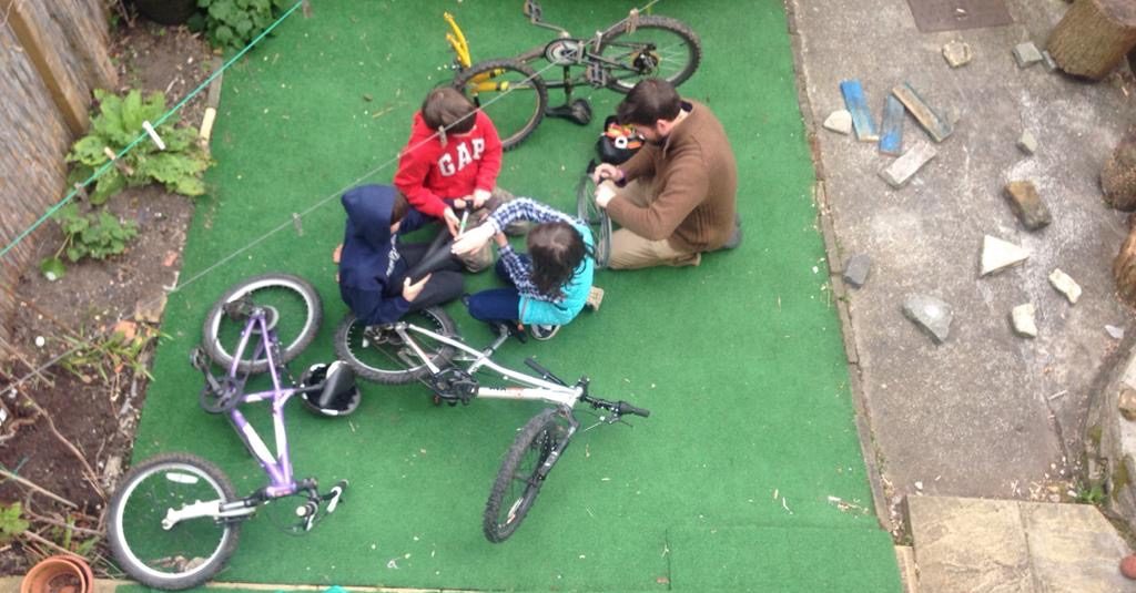 During a recent stroll in Richmond Park we met a friendly Police Officer, who clarified that only NHS Staff and kids under the age of 12 are presently free to cycle there. Thus the opportunity arose to invite my kids into some basic bicycle maintenance! We grappled with the process of puncture repair in our back garden and had a chance to use some tools from Daddy’s ’round-the-world’ tool kit (collated specially to minimise weight on Humanitarian Air Service Flights). So, not just fixing time, but story time too as I recalled adventures my tools had experienced ;o)